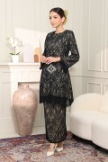 • Siluet Kebaya Moden: Padanan atasan kebaya yang labuh separas pinggul ke bawah lutut (tunik-style) memberikan impak yang selesa dan tampak sopan, dipadankan dengan skirt potongan lurus & kipas belakang yang memudahkan pergerakan.