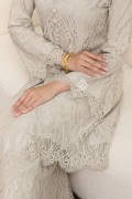 • Rekaan Lengan: Rekaan lengan panjang sedikit kembang di hujung (bell sleeves) menambah sentuhan feminin dan dramatik, dihiasi kemasan scallop lace yang menawan.