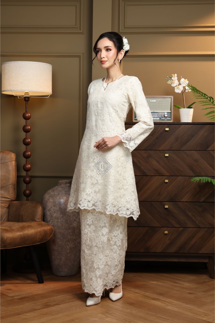 Each piece is a celebration of classic Malay sophistication, featuring a beautifully tailored silhouette, the signature loose fit of the Kurung Riau, and delicate lace detailing that speaks of heritage and craftsmanship.