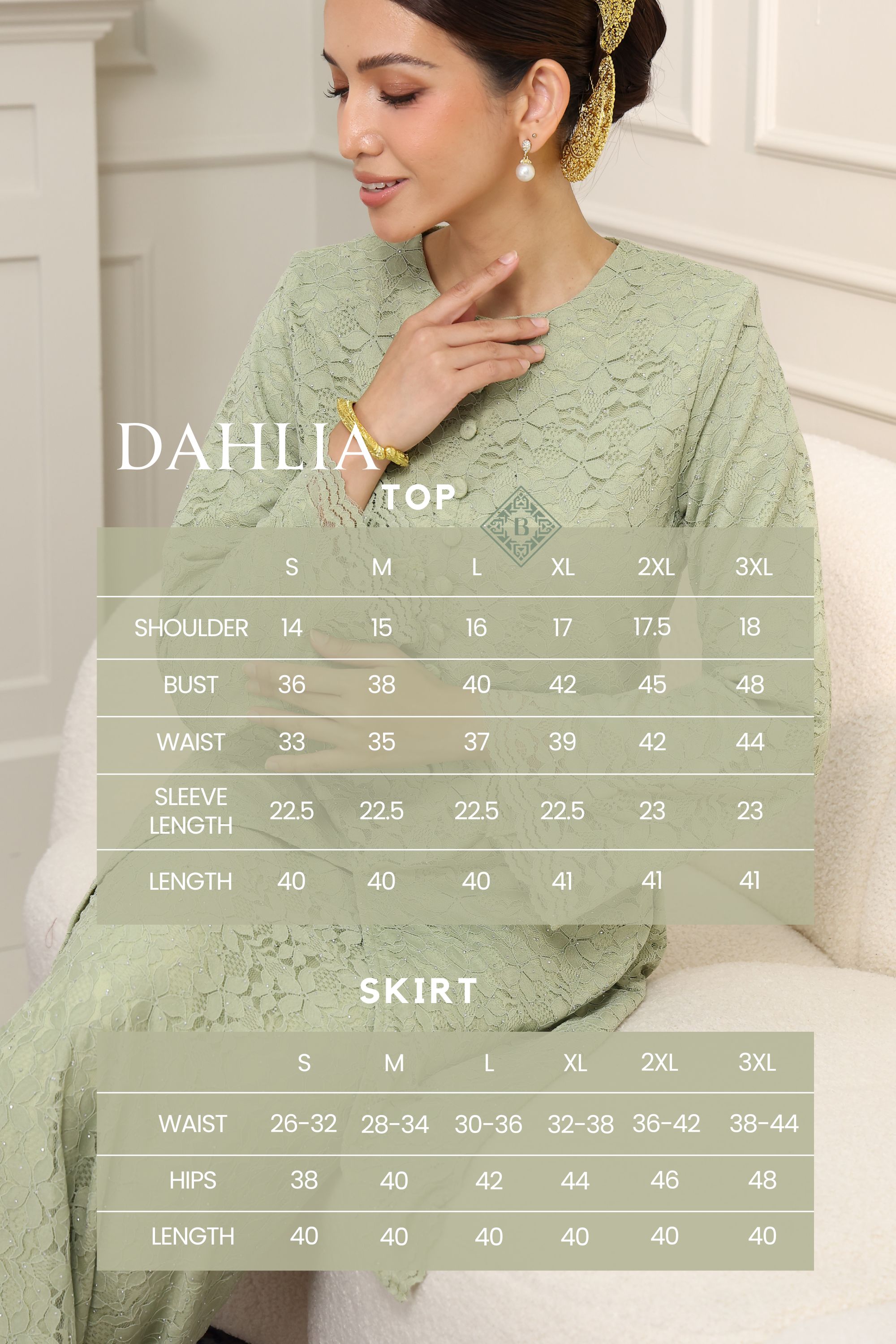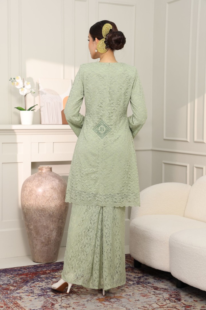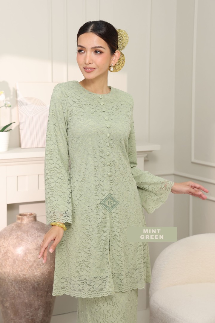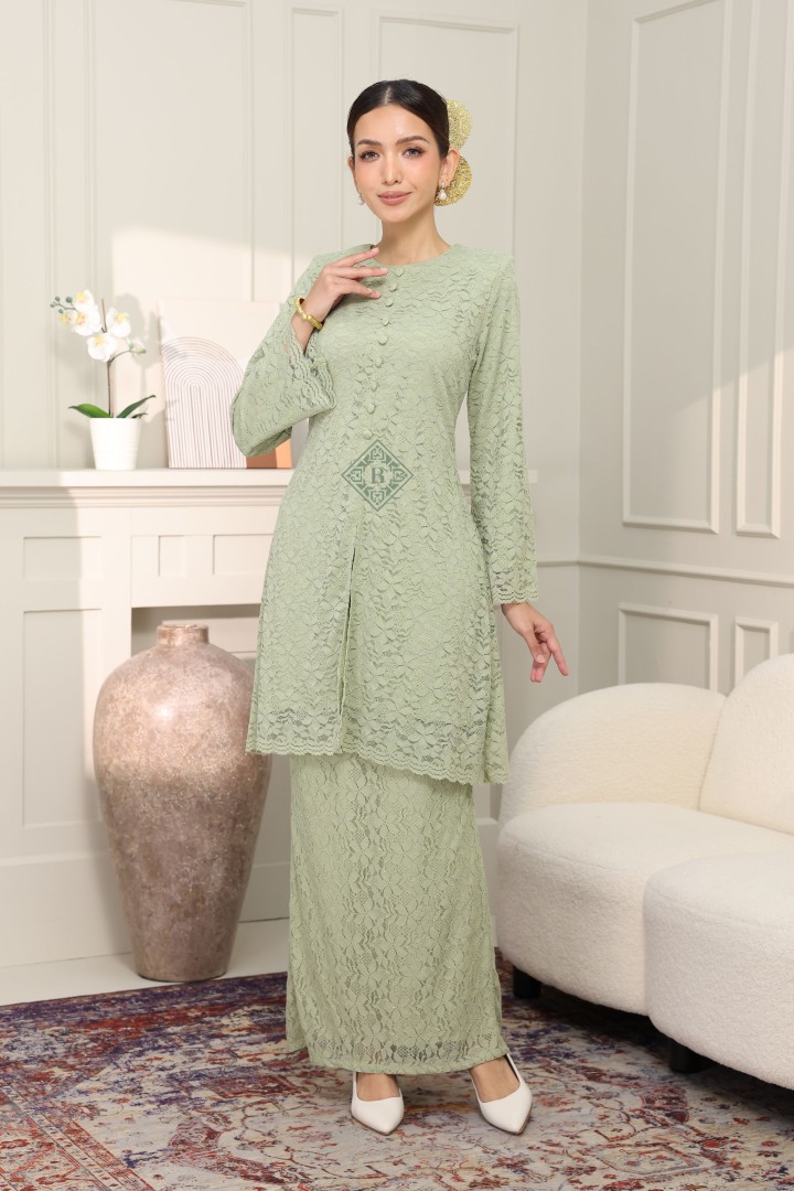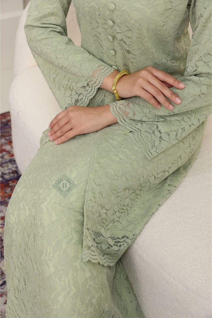Experience the perfect harmony of traditional modesty and contemporary luxury. Our Seraphina Kurung is meticulously crafted from premium floral corded lace, featuring a subtle metallic shimmer that dances under the light. Designed with a tailored "Modern Kurung" silhouette, it offers a slimming effect while maintaining a modest, dignified drape.