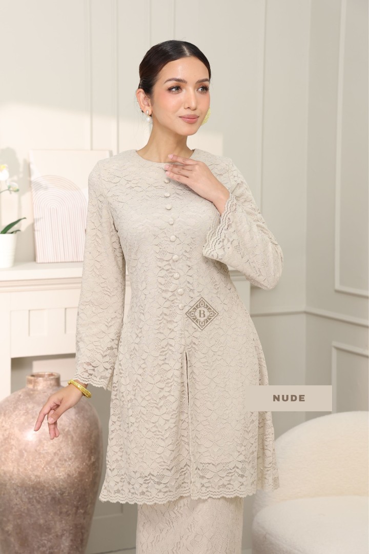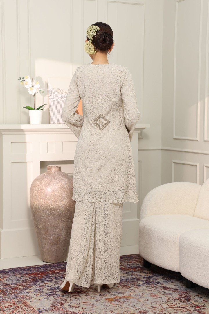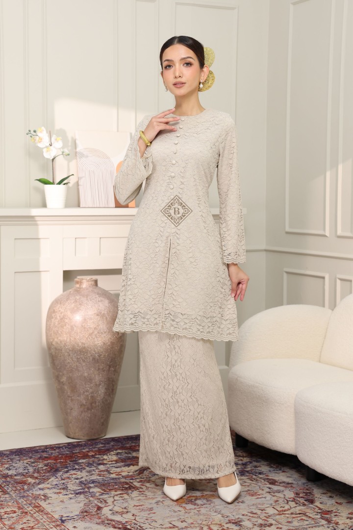 Experience the perfect harmony of traditional modesty and contemporary luxury. Our Seraphina Kurung is meticulously crafted from premium floral corded lace, featuring a subtle metallic shimmer that dances under the light. Designed with a tailored "Modern Kurung" silhouette, it offers a slimming effect while maintaining a modest, dignified drape.