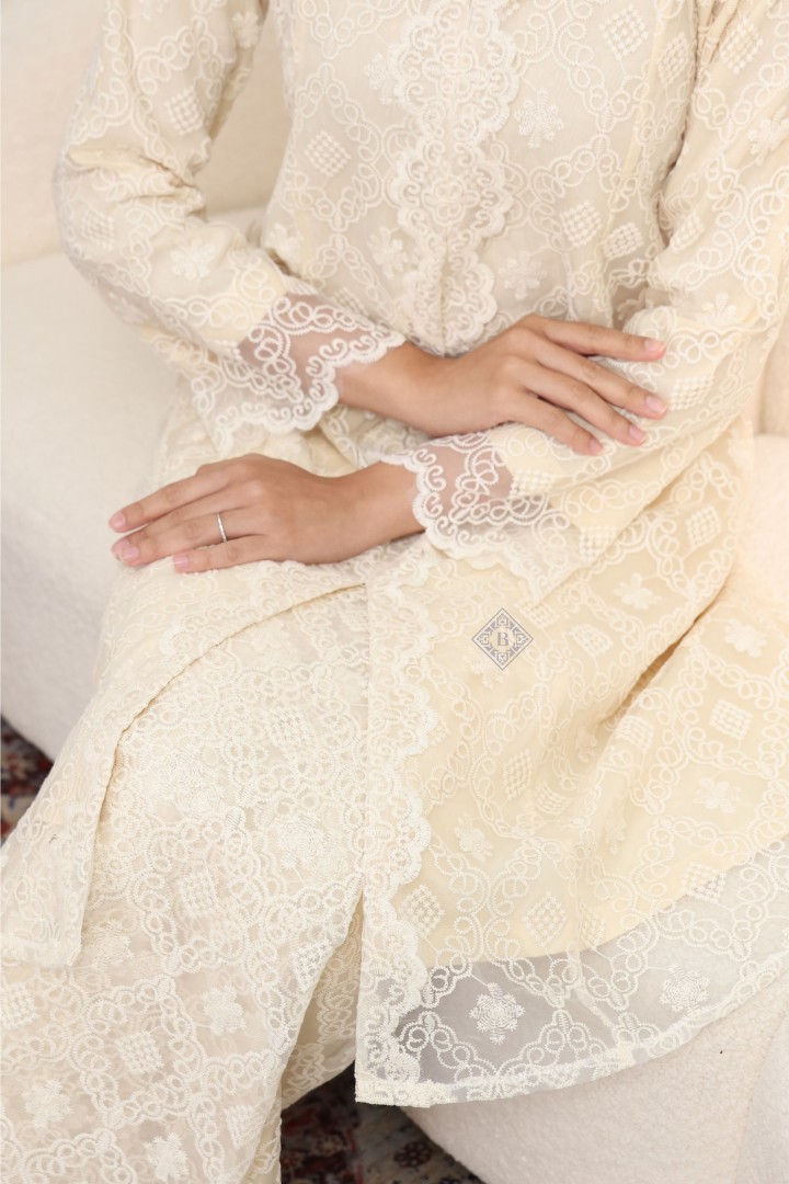 A celebration of timeless elegance and cultural heritage, this KEBAYA MAHARANI redefines classic wear with a contemporary twist. Perfect for festive occasions, weddings, or any special event, this ensemble exudes sophistication and grace.
