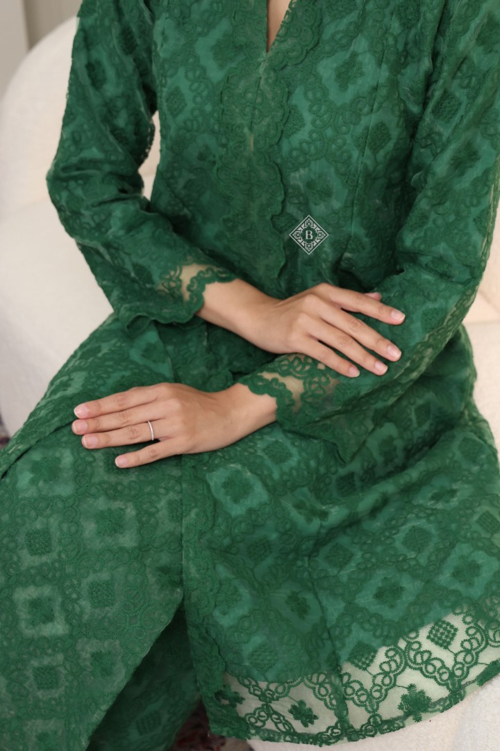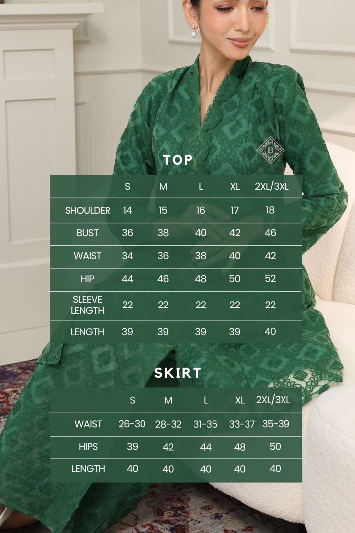 A celebration of timeless elegance and cultural heritage, this KEBAYA MAHARANI redefines classic wear with a contemporary twist. Perfect for festive occasions, weddings, or any special event, this ensemble exudes sophistication and grace.
