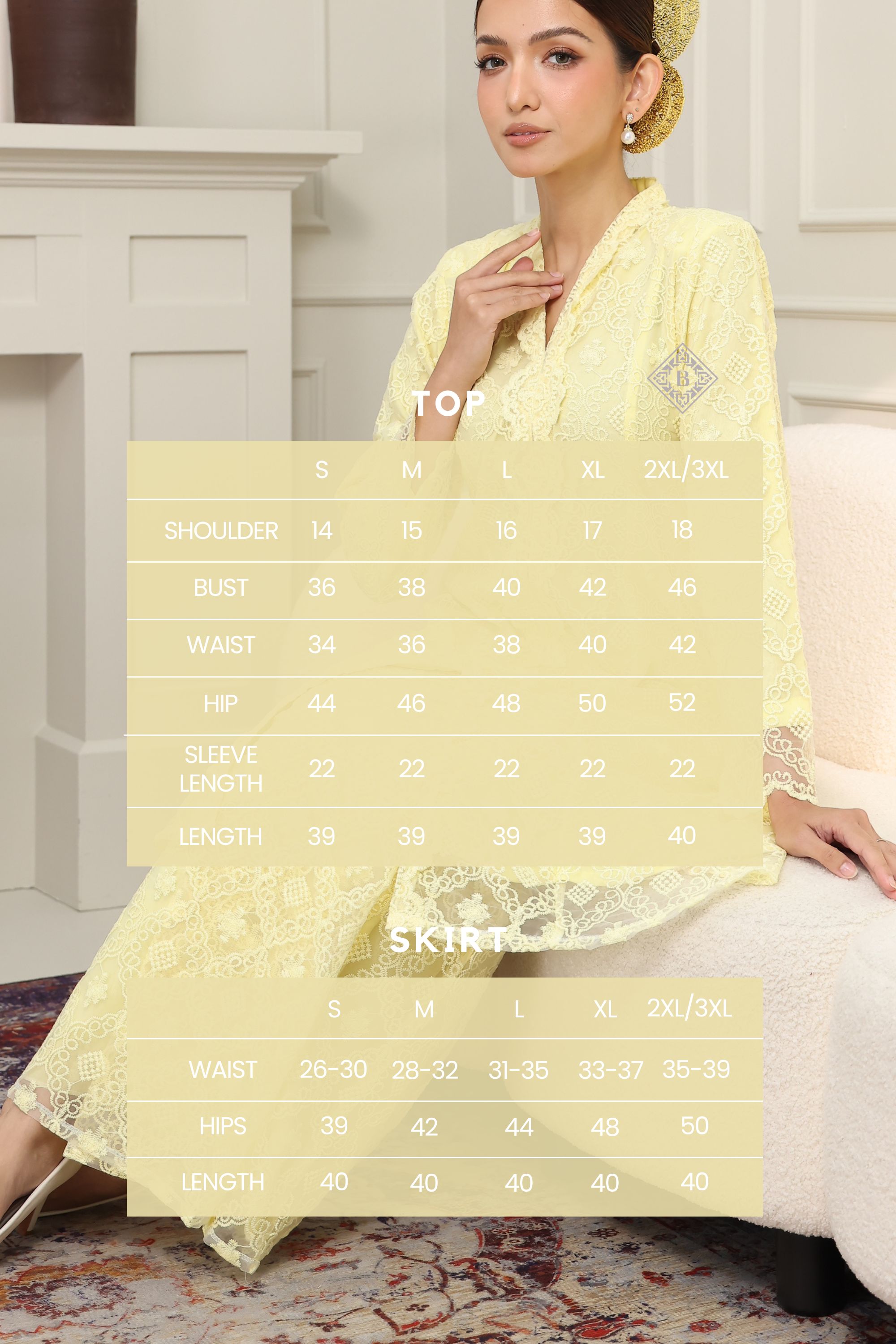 A celebration of timeless elegance and cultural heritage, this KEBAYA MAHARANI redefines classic wear with a contemporary twist. Perfect for festive occasions, weddings, or any special event, this ensemble exudes sophistication and grace.