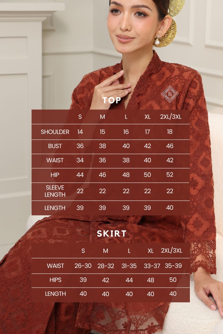 A celebration of timeless elegance and cultural heritage, this KEBAYA MAHARANI redefines classic wear with a contemporary twist. Perfect for festive occasions, weddings, or any special event, this ensemble exudes sophistication and grace.