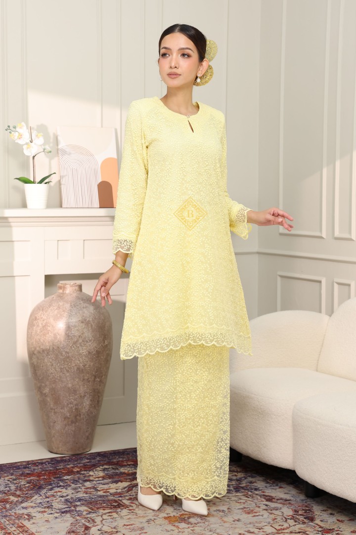 Each piece is a celebration of classic Malay sophistication, featuring a beautifully tailored silhouette, the signature loose fit of the Kurung Riau, and delicate lace or embroidered detailing that speaks of heritage and craftsmanship.