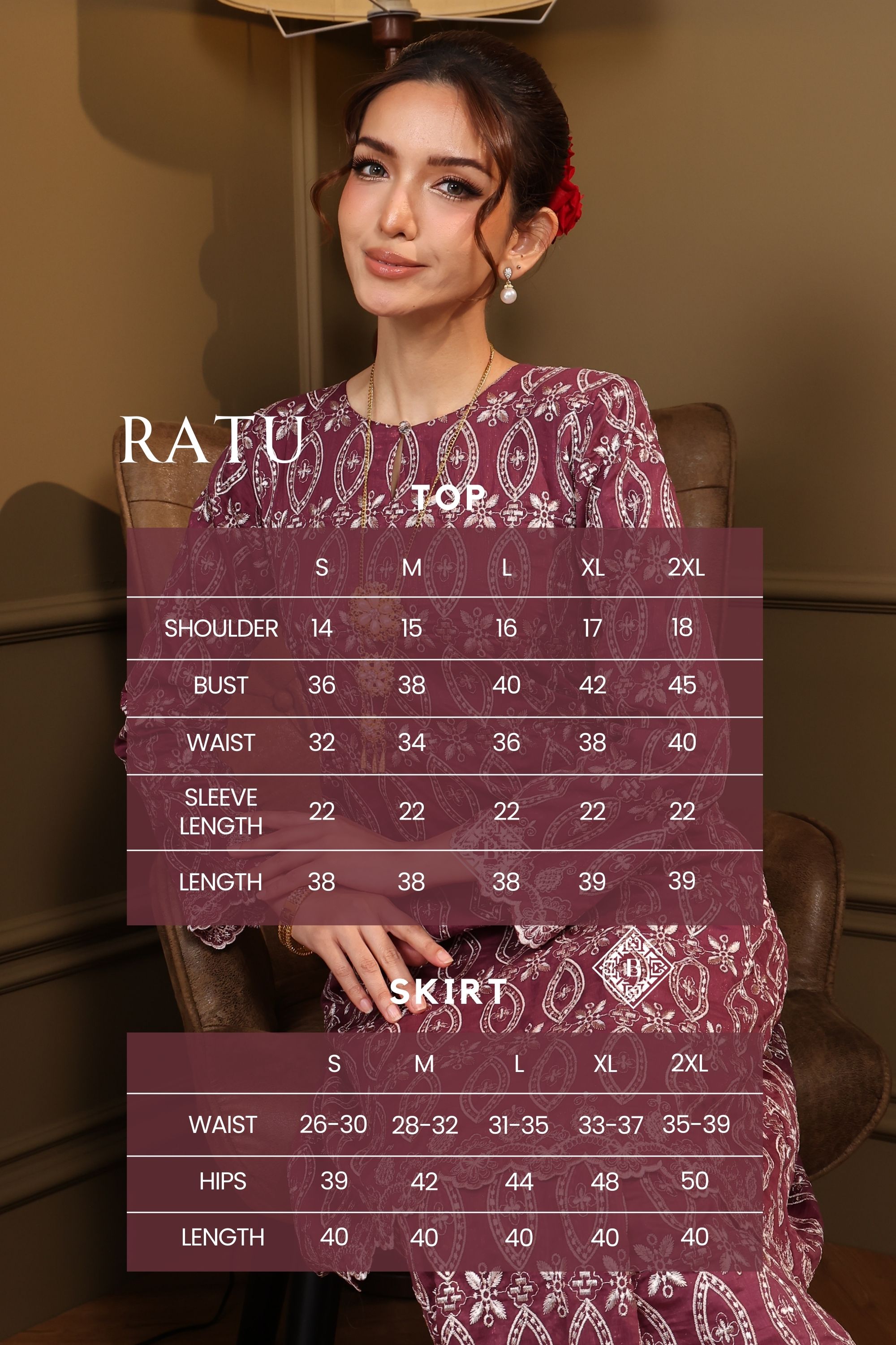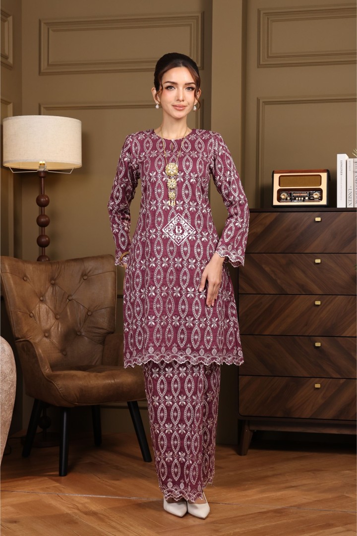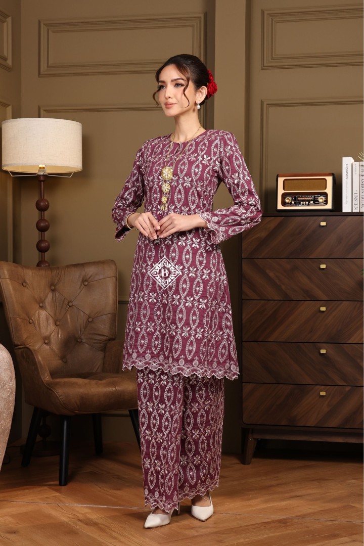 Each piece is a celebration of classic Malay sophistication, featuring a beautifully tailored silhouette, the signature loose fit of the Kurung Riau, and delicate lace or embroidered detailing that speaks of heritage and craftsmanship.