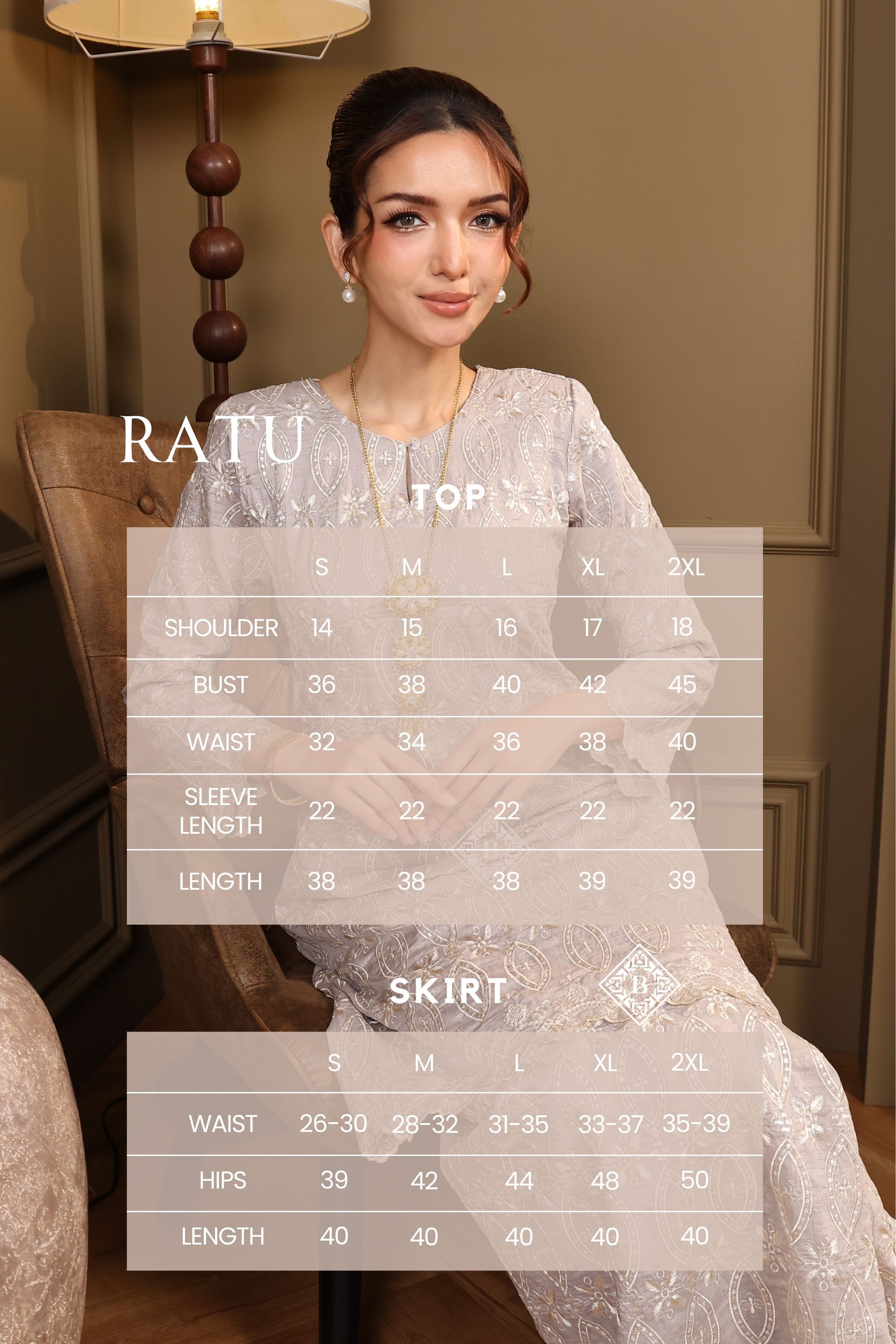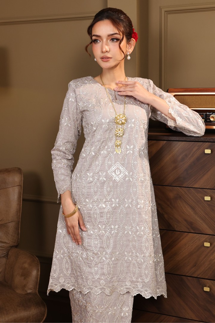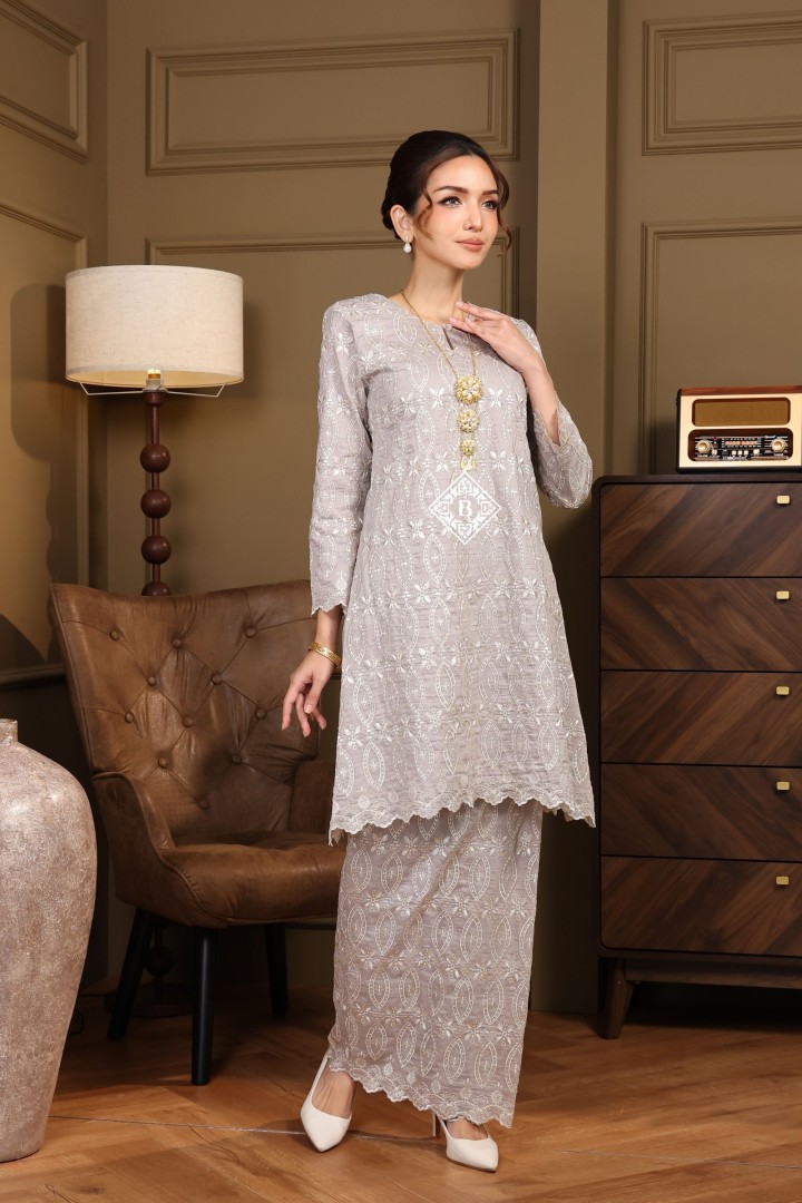 Each piece is a celebration of classic Malay sophistication, featuring a beautifully tailored silhouette, the signature loose fit of the Kurung Riau, and delicate lace or embroidered detailing that speaks of heritage and craftsmanship.