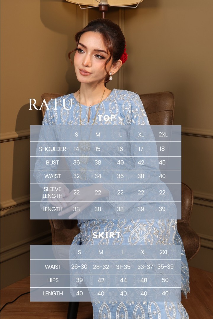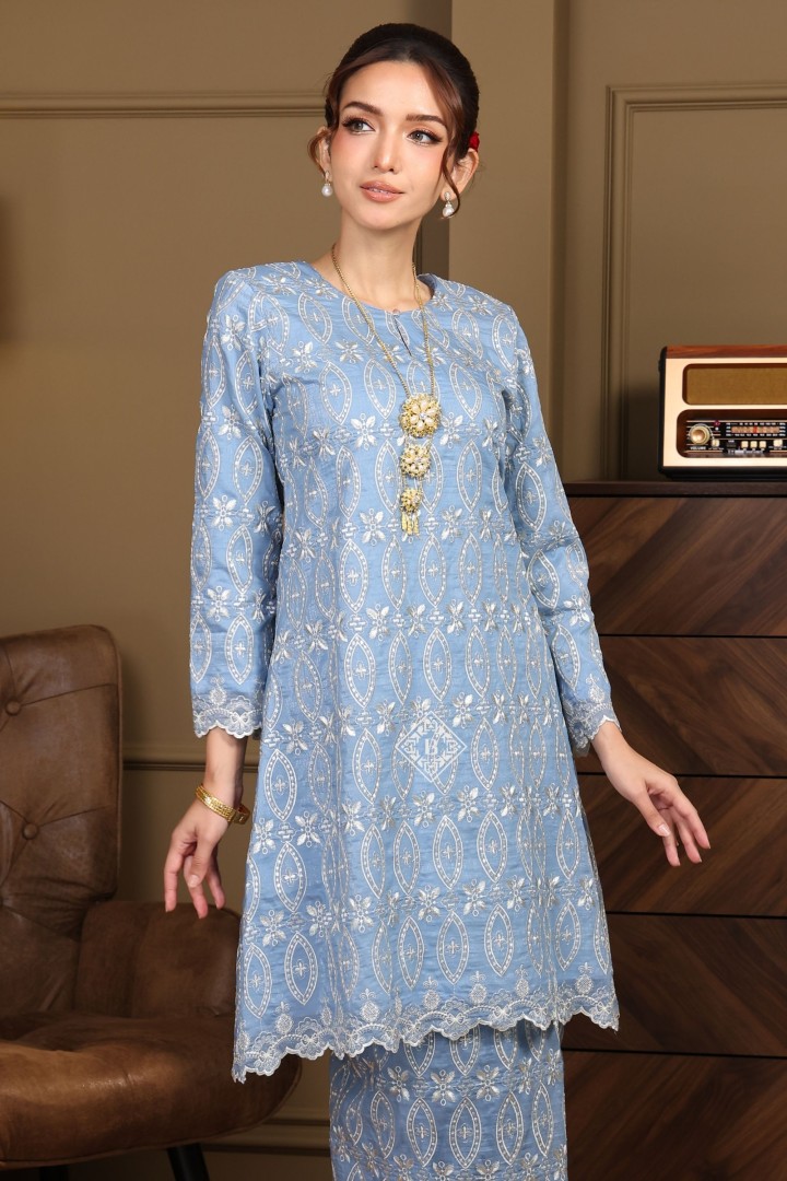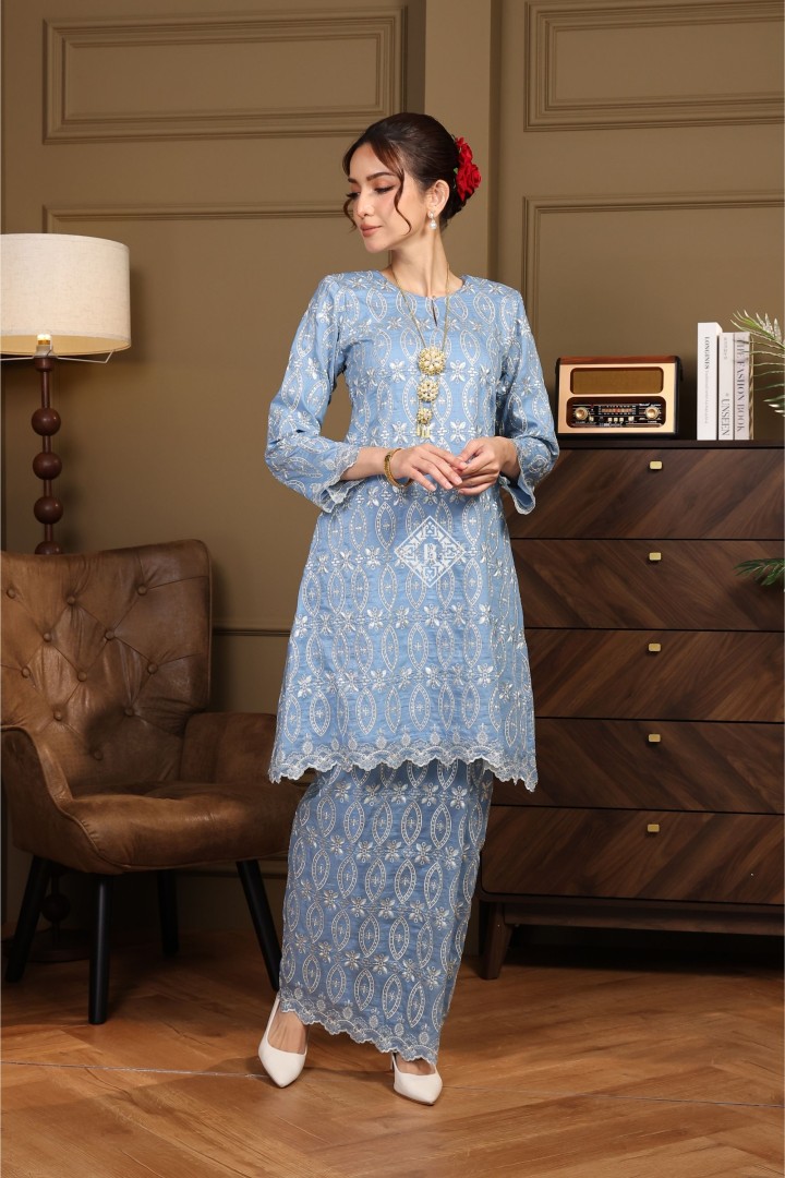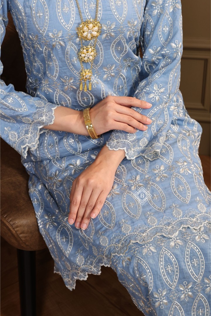 Each piece is a celebration of classic Malay sophistication, featuring a beautifully tailored silhouette, the signature loose fit of the Kurung Riau, and delicate lace or embroidered detailing that speaks of heritage and craftsmanship.