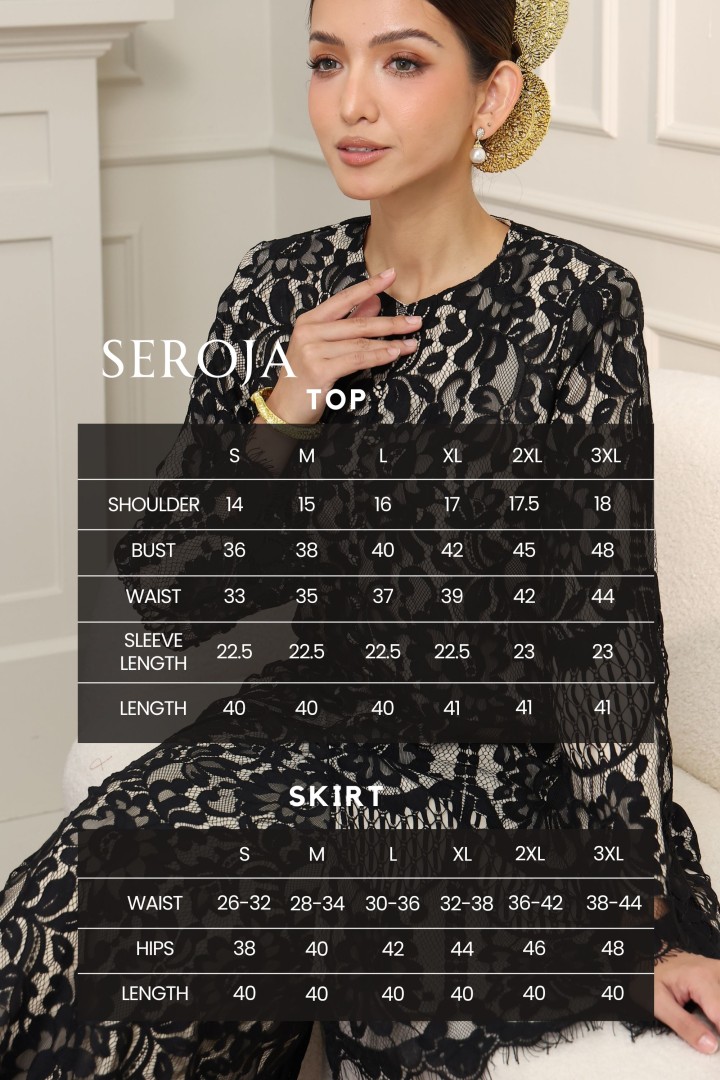 Raihlah keindahan warisan dengan Koleksi Seroja kami, menampilkan perincian sulaman lace mewah yang menawan. Pakaian ini menggabungkan siluet klasik kurung Riau Melayu dengan potongan moden yang selesa dan anggun, sesuai untuk majlis formal, sambutan hari raya, atau acara istimewa anda.