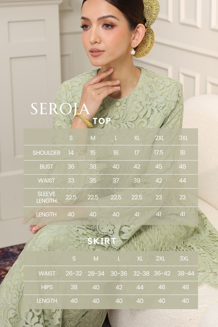 Raihlah keindahan warisan dengan Koleksi Seroja kami, menampilkan perincian sulaman lace mewah yang menawan. Pakaian ini menggabungkan siluet klasik kurung Riau Melayu dengan potongan moden yang selesa dan anggun, sesuai untuk majlis formal, sambutan hari raya, atau acara istimewa anda.