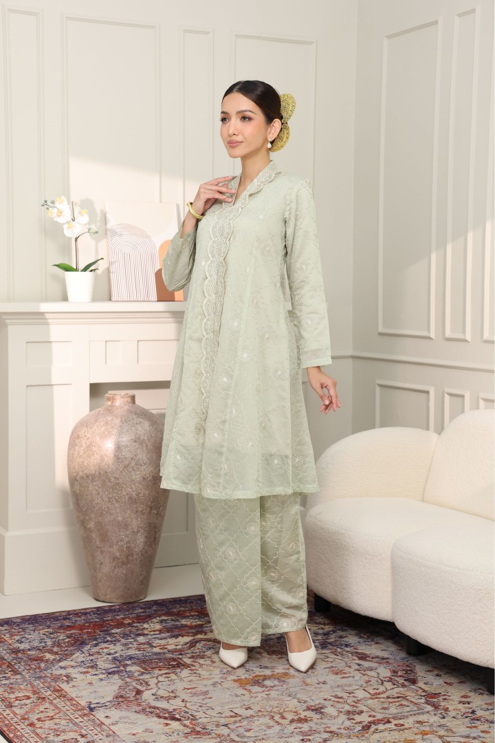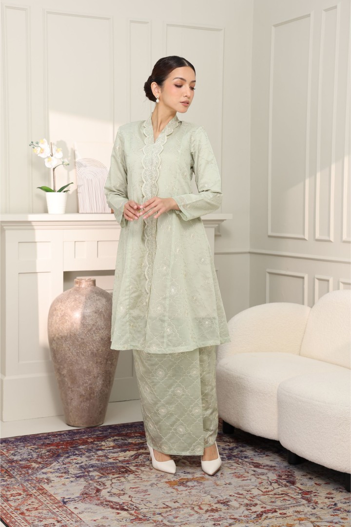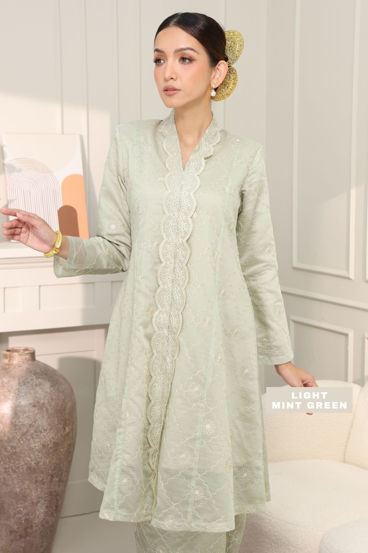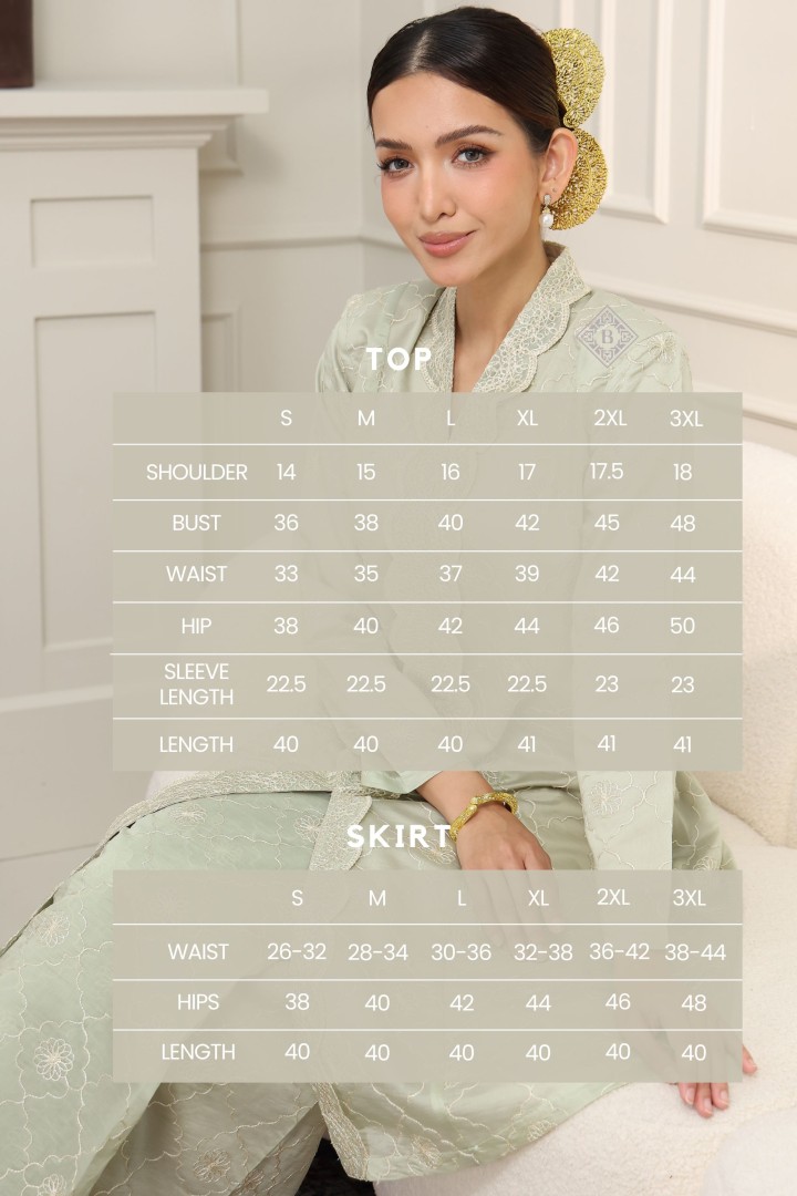 Classic flattering silhouette: The top gently flares out (A-line) from the waist, offering a flattering, comfortable fit, while the matching skirt (bottom) is kain lipat batik with FULL LINING.