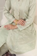 Designed with a modest V-neckline and a classic silhouette, it offers effortless grace and comfort for any occasion. The intricate detailing of metallic threads makes this piece a perfect choice for festive celebrations or refined everyday wear.
