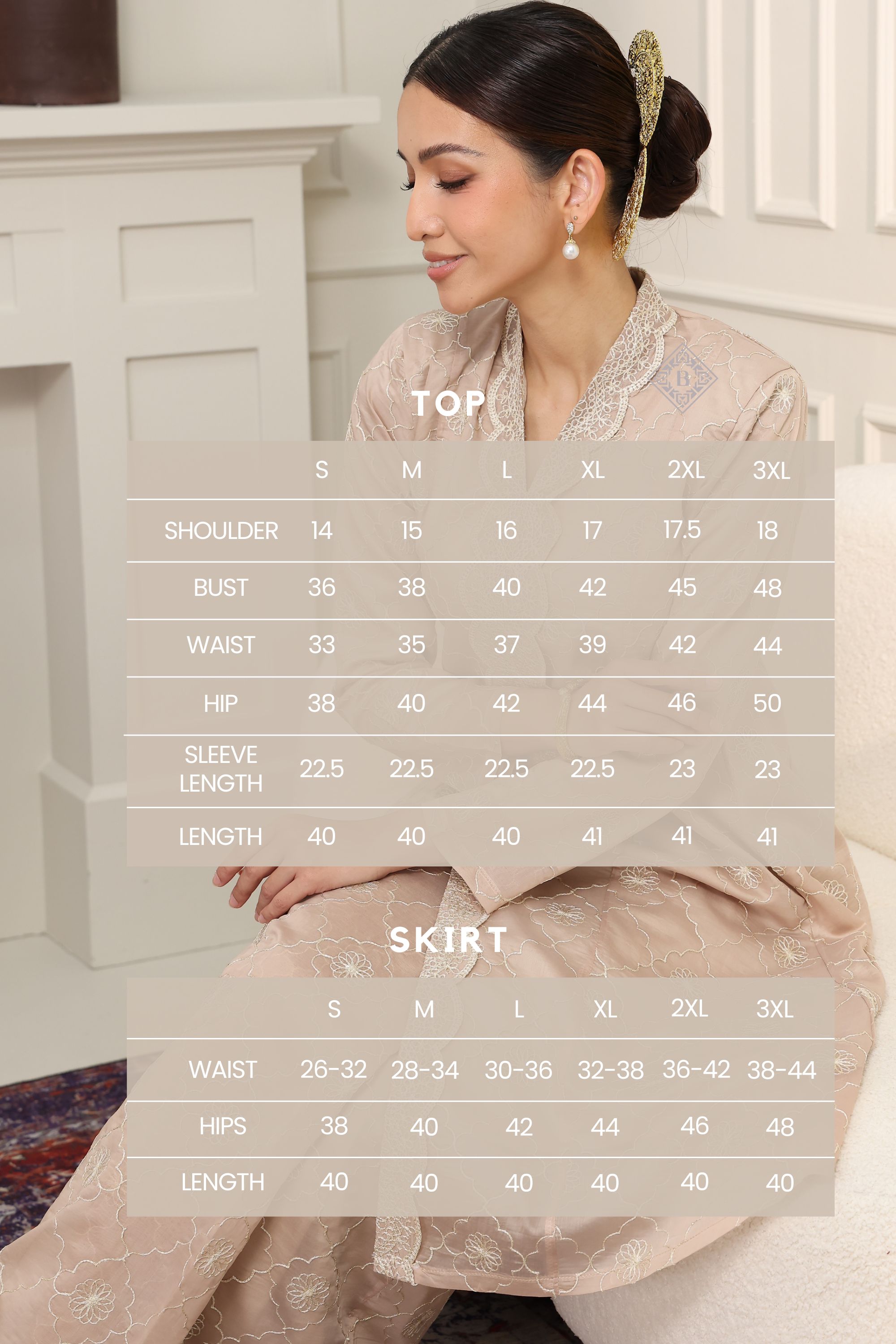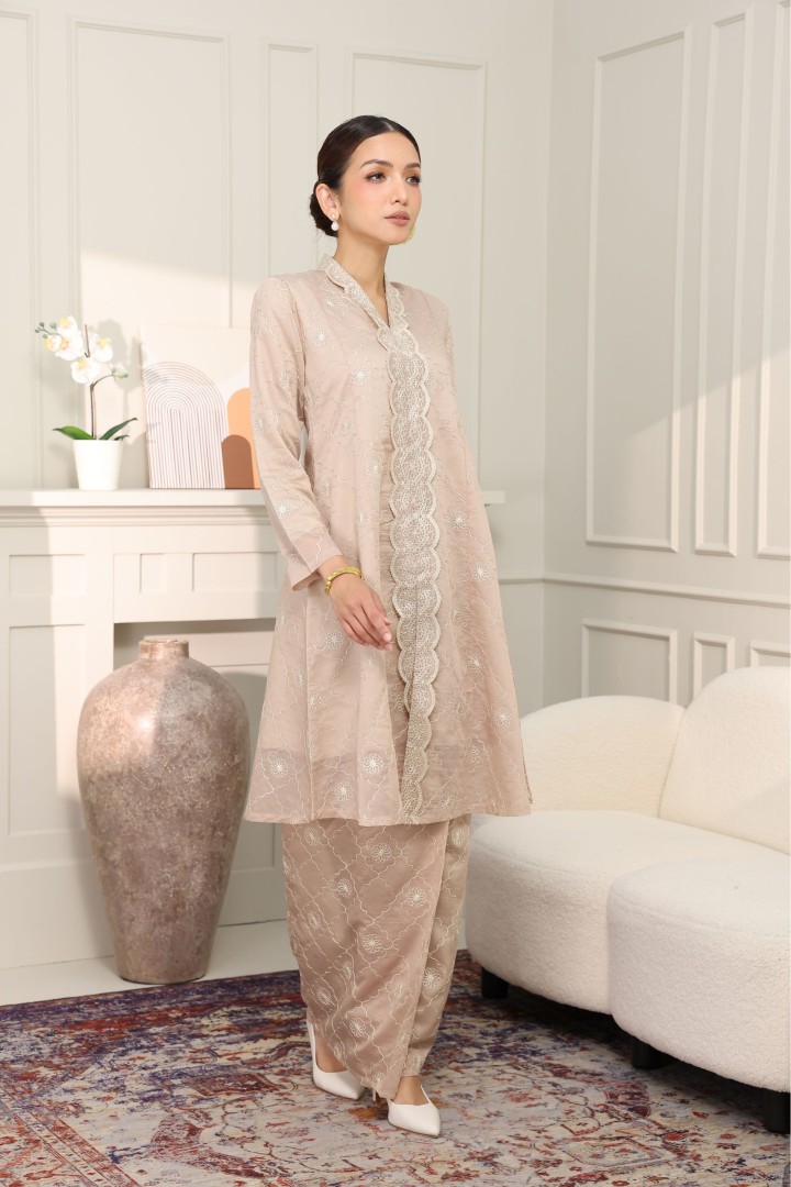 Classic flattering silhouette: The top gently flares out (A-line) from the waist, offering a flattering, comfortable fit, while the matching skirt (bottom) is kain lipat batik with FULL LINING.