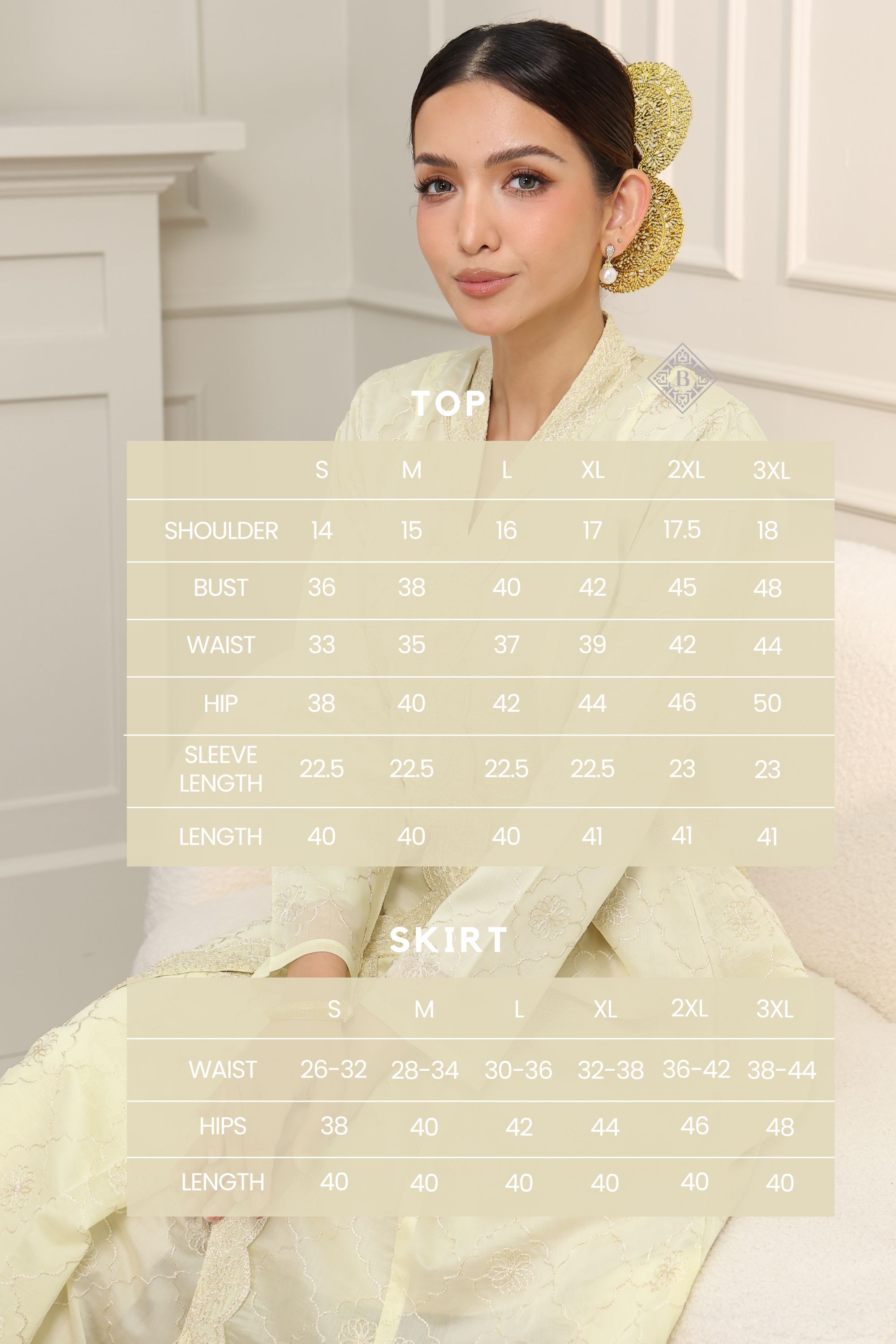 Classic flattering silhouette: The top gently flares out (A-line) from the waist, offering a flattering, comfortable fit, while the matching skirt (bottom) is kain lipat batik with FULL LINING.