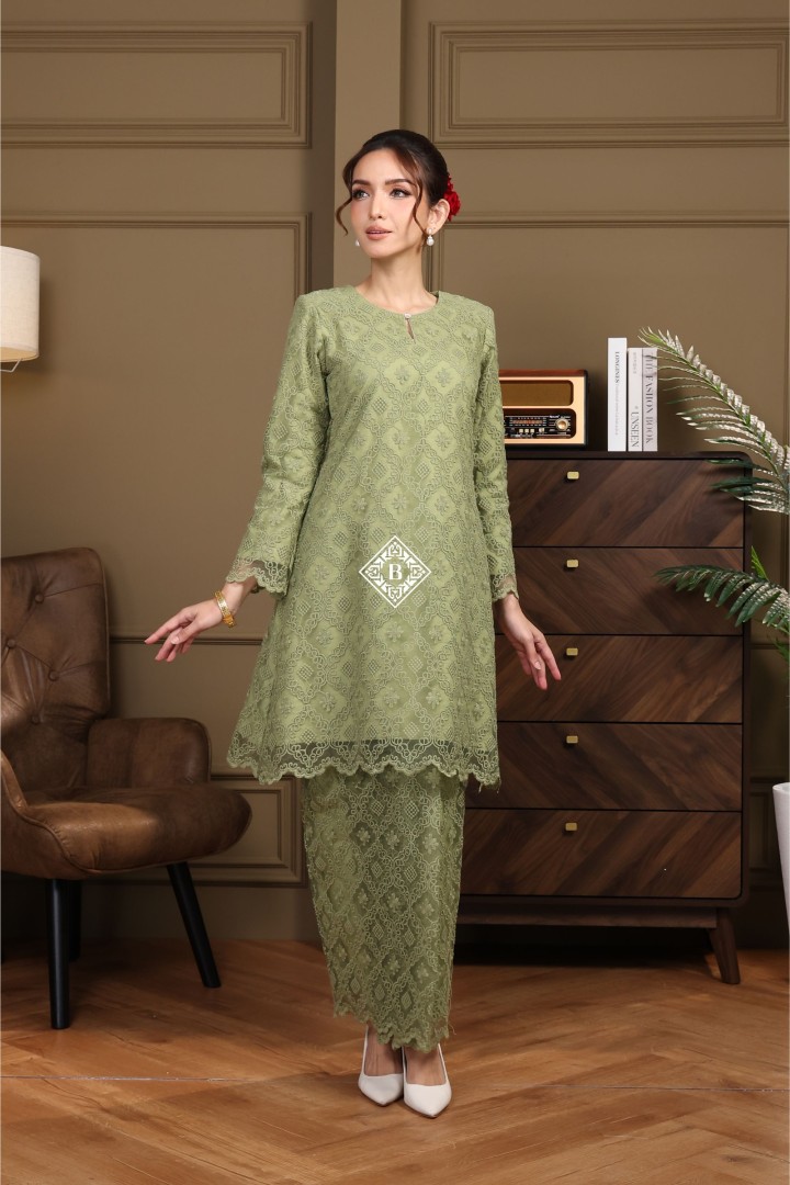 Each piece is a celebration of classic Malay sophistication, featuring a beautifully tailored silhouette, the signature loose fit of the Kurung Riau, and delicate lace or embroidered detailing that speaks of heritage and craftsmanship.
