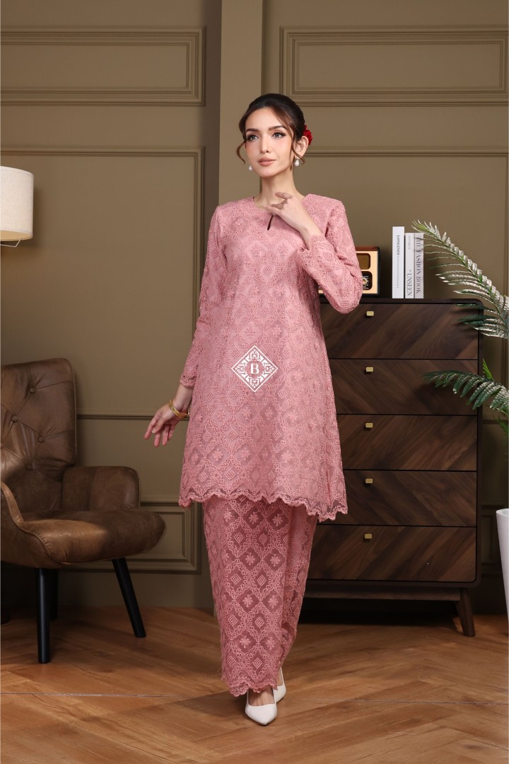 Each piece is a celebration of classic Malay sophistication, featuring a beautifully tailored silhouette, the signature loose fit of the Kurung Riau, and delicate lace or embroidered detailing that speaks of heritage and craftsmanship.